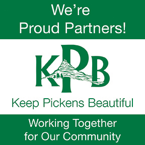 The Adopt-A-Road program is one of Keep Pickens Beautiful's oldest and most successful initiatives. When community members 'adopt' a road, they agree to picking up the roadside trash at least 4 times per year. To recognize their efforts, KPB installs identifying signs at each end of their adopted stretch of road. To learn more about AAR, click HERE.